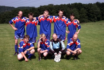 Der Verein pachtete eine Wiese und funktionierte sie zu einem Sportplatz um. Noch heute weist der Platz eine gewisse Schräglage. Heimvorteil nennt man das in Fachkreisen. Im Laufe der Zeit kamen ein Clubhaus und eine Flutlichtanlage hinzu. Später wurde das Clubhaus um einen Sanitärbereich und eine kleine Küche erweitert. Bis heute aber hat der FC Karrenstein den einzigen “Rasenplatz” in Hückeswagen, um den uns viele beneiden!! Die Gegner findet der FC Karrenstein unter gleichgesinnten in der näheren und weiteren Umgebung. Allerdings sind die Zeiten vorbei, als unsere Stars die SG Marke mit 19:1 (1. Mai 1985 in Marke!) vom Platz fegte. Bis vor 3 Jahren fanden regelmäßig große Turniere in Karrenstein statt. Aber die Kicker wurden älter und der Aufwand nicht geringer. Da sind wir schon bei einem Problem, das viele Vereine haben: Nachwuchssorgen. Wer also mal mitkicken möchte, ist herzlich zum Training (jeden Donnerstag um 19 Uhr) eingeladen. Am 13. Juli 2003 fand nach zwei Jahren Pause wieder er Turnier in Karrenstein statt. Die Verantwortlichen waren sich sicher: Das war ein Erfolg! Dieser Erfolg soll wiederholt werden. Freuen wir uns also auf die nächsten Turniere hier in Karrenstein. |